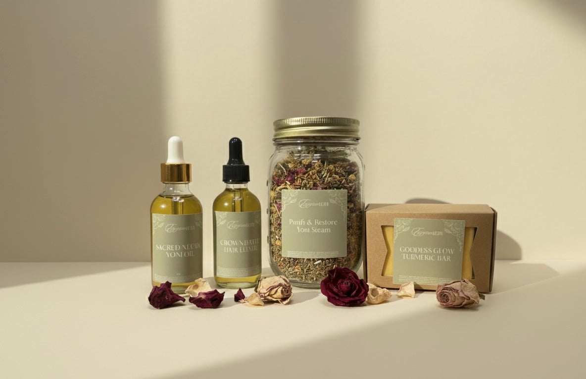 We specialize in holistic body alchemy. Whether you are looking for the transformative power of our Hair Growth Oil, the gentle balance of our Yoni Oils, or the skin-brightening magic of our Turmeric Soap, our products are a love letter to your natural beauty. Experience the healing power of earth-derived ingredients and step into your highest self.